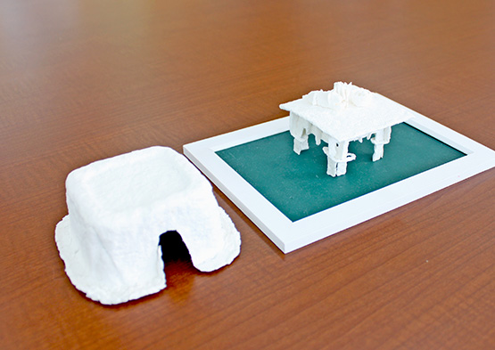 ヒカリのアトリエのテーブルにも、Tさんの作ったこたつが飾られ、