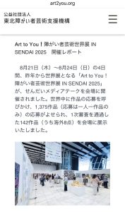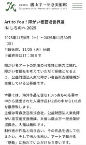 2025年11月8日~30日、七戸町立鷹山宇一記念美術館で開催されている、「Art to You!~心おどるアートとの出会い!~障がい者芸術世界展 IN しちのへ 2025」。ヒカリのアトリエからも、毎年、たくさんの方が応募されています。