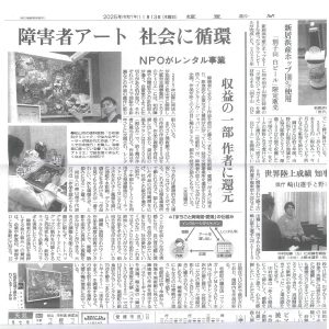 今年の夏の松前町のファンガーデン様での展覧会、イベント会場、松前町役場様での展示、各設置店舗様、当事業所、ご利用者様等、取材を重ねていただき、「まちごと美術館・愛媛」のしくみについてや、社会的インパクト、アーティスト、企業様等、多角的に詳しくご紹介いただいております。多角的な立場から多方面に取材してくださった担当記者様の熱意が有り難く、今後の事業展開にも身の引き締まる思いでおります。