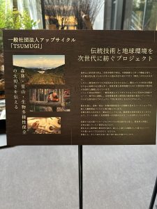 そちらの空間に、インクルーシヴ・ジャパンの作品を置いていただいています。作品がプリントされているのは、アップサイクルで作られた紙糸「TSUMUGI」で織られたキャンバスです。『森呼吸(しんこきゅう)BAR』のイメージと重なり、静かな空間に森のエッセンスを感じます。