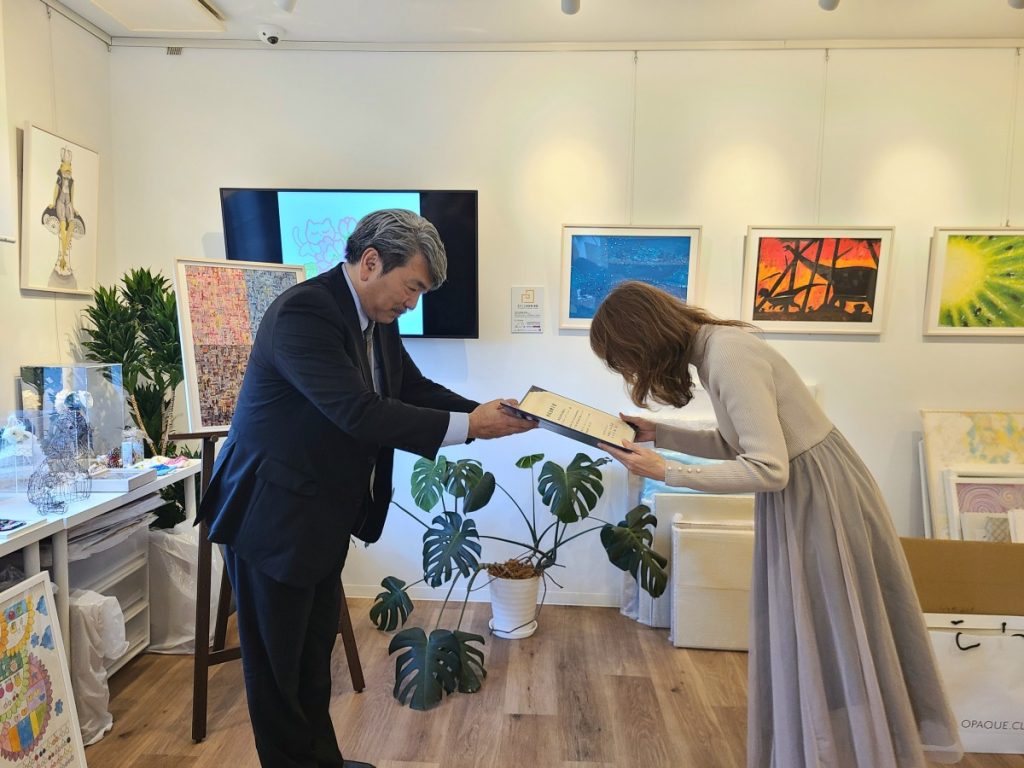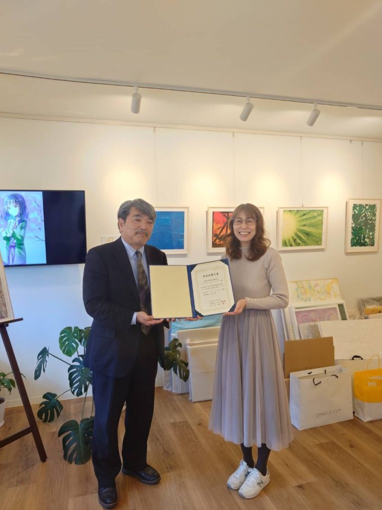 贈呈式は、丸紅基金のご担当者様に実際に事業所までお越しいただく形で実施され、